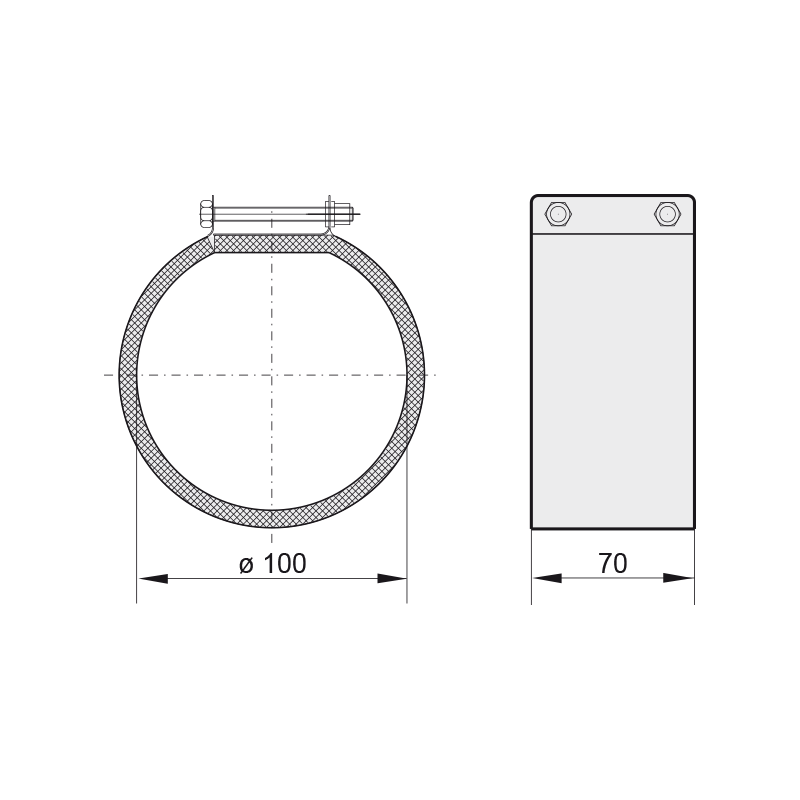 Obejmy od wewnątrz wyłożone są gumą EPDM redukującą przenoszenie hałasu i drgań.