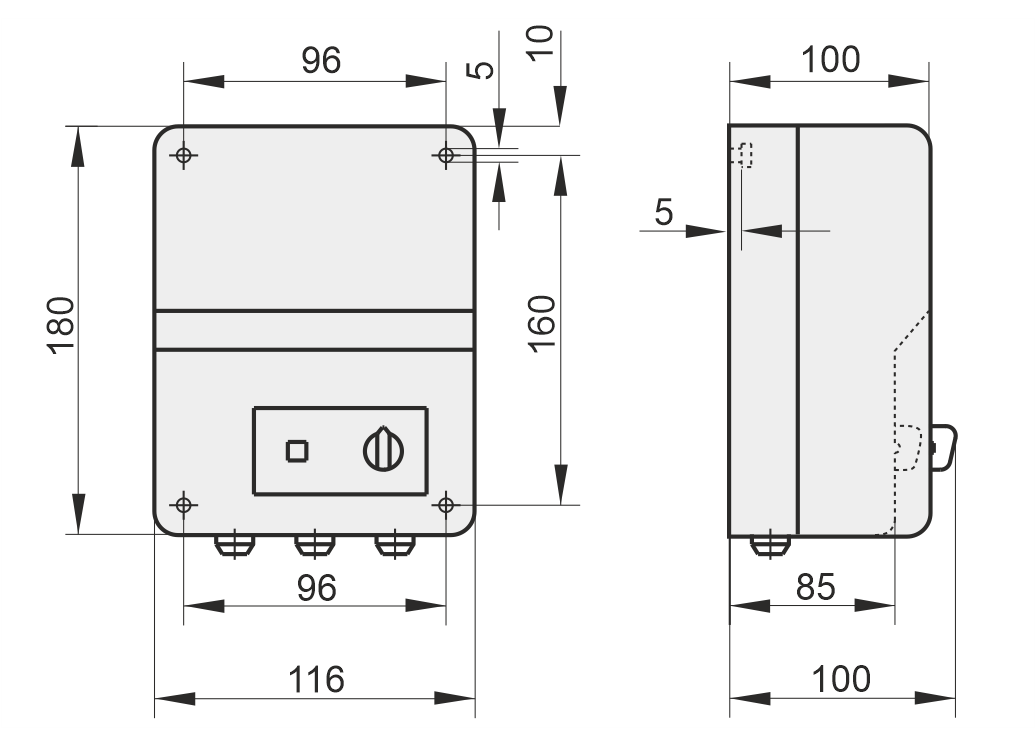 Obudowa wykonana z wysokoudarowego tworzywa sztucznego w kolorze szarym. Klasa szczelności IP54. Przekaźniki MS... należy montować wewnątrz pomieszczeń, na powierzchni ściany.