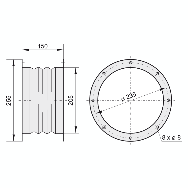 Kołnierze wykonane są z galwanizowanej blachy stalowej. Znajdującą się pomiędzy nimi część elastyczną stanowi tkany materiał z tworzywa sztucznego PVC.